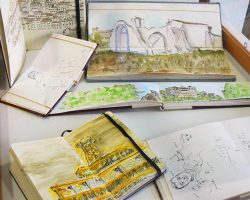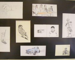 A exposição "Surroundings…, ao redor…" tem assim como base o diário gráfico, cuja utilização permite-lhe olhar o mundo de uma forma diferente. "Quantas vezes ao dia vislumbramos pequenos pássaros comuns, e não nos damos conta da sua beleza, os tons de castanho das suas penas, os seus olhos pequenos e profundos? Quantas vezes ao dia nos encontramos na posição de ver o mar como plano de fundo, as habitações, e o movimento urbano? Muitas, mas por vezes não damos a devida atenção a esses momentos particulares tão simples". Assim, Hugo Pereira tenta mostrar partes do seu dia-a-dia, alguns pormenores da vida, uns em que o mais tempo foi suficiente para trabalhos fora do diário gráfico, e outros que duraram minutos, ou apenas segundos, e que ficaram registados como esboços no diário. Transpor o que se passa na sociedade à nossa volta, mesmo quando essa sociedade começa a ter comportamentos disfuncionais como no momento da "histeria colectiva" da pandemia de gripe A ou o uso da Lumografia como meio de aproximação e decomposição do que se vê são impulsos que levaram o artista a produzir alguns trabalhos em que a conceptualização é mais elaborada. Hugo Pereira partilha uma grande identidade de espírito com o movimento dos Urban Sketchers, pelo que subscreve o seu Manifesto: Desenhamos “ in situ”, no interior e no exterior, capturando directamente o que observamos. Os nossos desenhos contam histórias do que nos rodeia, dos lugares onde vivemos e por onde viajamos. Os nossos desenhos são um registo do tempo e do lugar. Somos fiéis às cenas que presenciamos. Usamos qualquer tipo de técnica e partilhamos a diversidade de estilos. Apoiamo-nos uns aos outros e desenhamos em grupo. Partilhamos os nossos desenhos na internet. Mostramos o mundo, desenho a desenho. (www.urbansketchersportugal.blogspot.com) E acrescenta: "A arte está à nossa volta, está ao redor…, em tudo se pode achar arte. Cabe a cada um de nós decidir o que fazer com ela." CONTACTOS: Telemóvel: 962 520 330 e-mail: schecter_11@hotmail.com Página internet: www.flickr.com/photos/draws_around_the_world