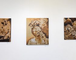 De temática realista, os brilhos, os tons castanhos e a composição individualizada de cada obra, permite que o pormenor evidencie a origem de cada pensamento e intuição.