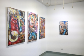 A mostra de treze obras oferece uma crítica social expressiva, que reflete a complexidade da sociedade moderna através do uso de cores vibrantes e movimentos dinâmicos. A artista utiliza pinceladas soltas e rápidas, transmitindo uma expressão emocional autêntica e capturando a essência dos temas retratados.
