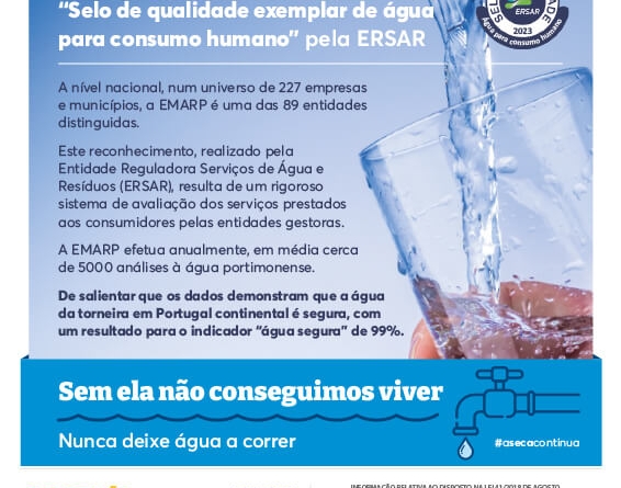 Luís Maximiano2024-11-18T13:10:54+00:00- EMARP volta a ser distinguida com “selo de qualidade exemplar de água para consumo humano” pela ERSAR