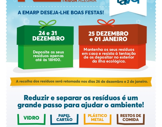 - A recolha dos resíduos será retomada nos dias 26 de dezembro e 2 de janeiro