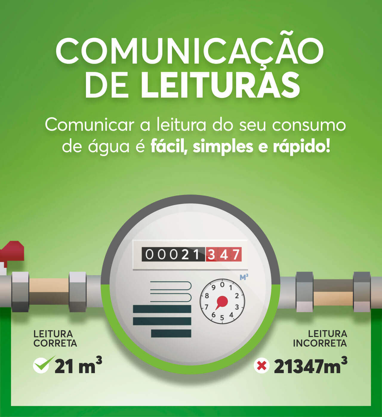 Comunique a leitura no intervalo de dias indicado no campo das observações, no verso da sua fatura, para que não haja desfasamento dos dias de consumo (tarifa fixa), e evite estimativas.